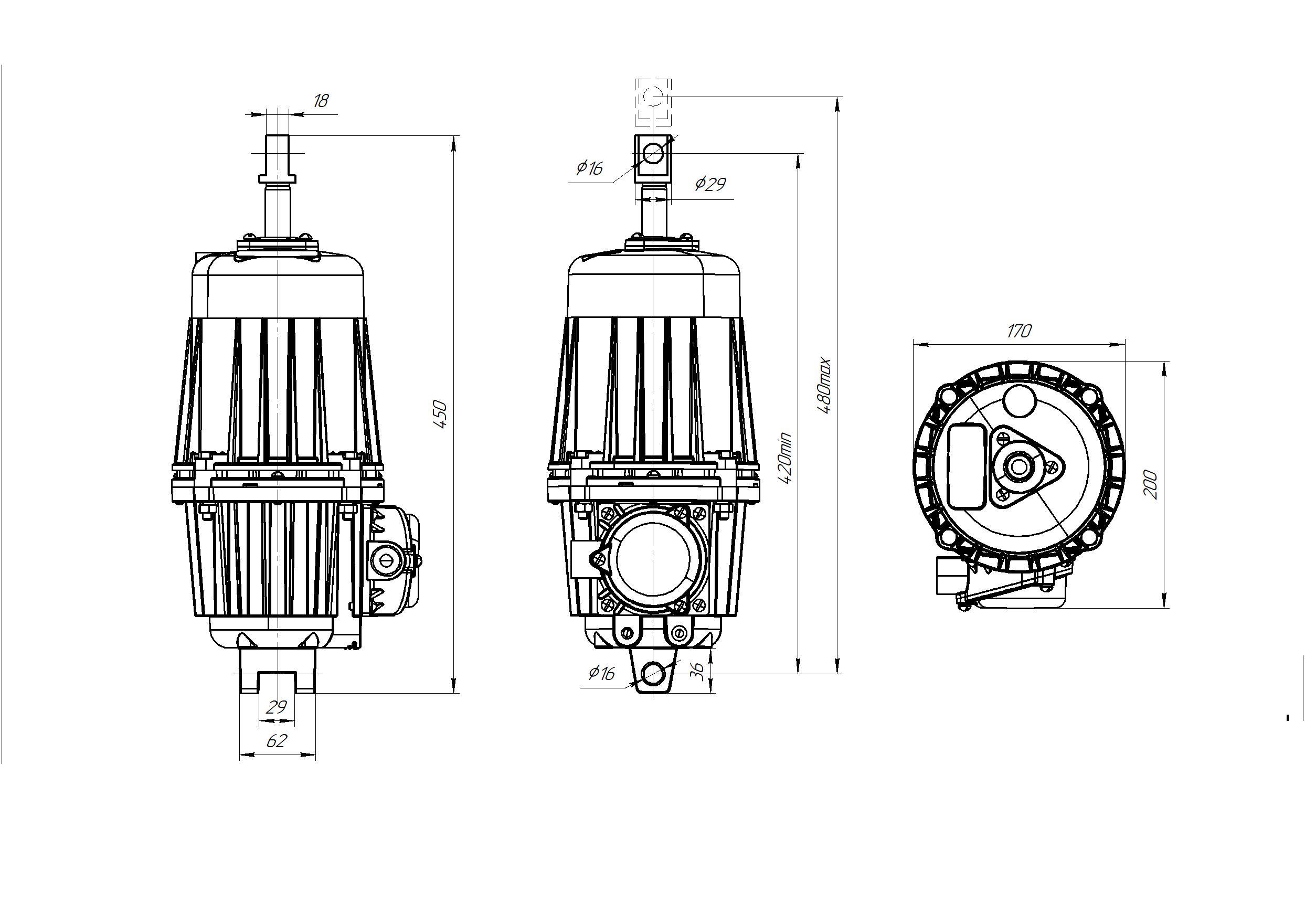 660, 380/220Габаритные размеры гидротолкателя ТЭ-50